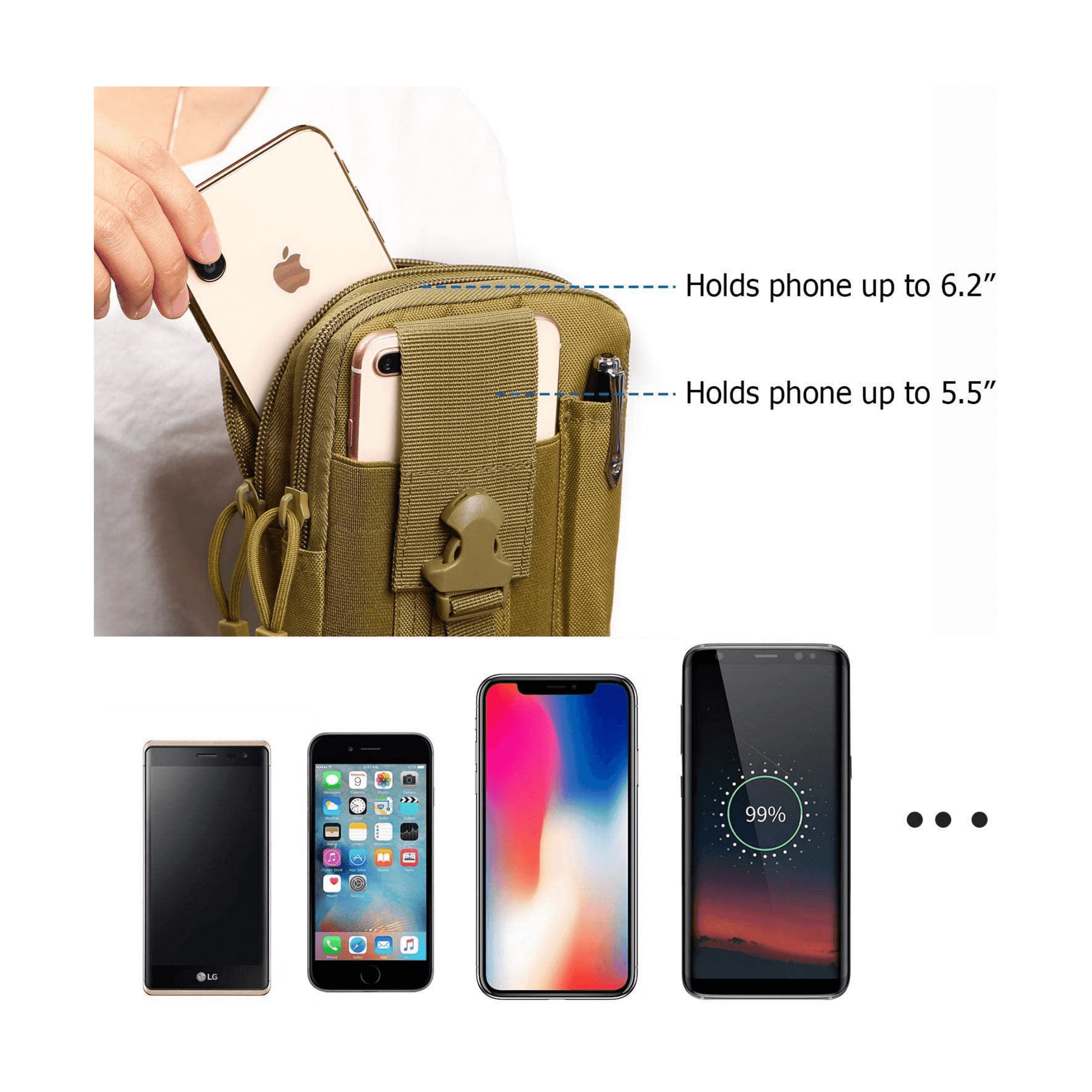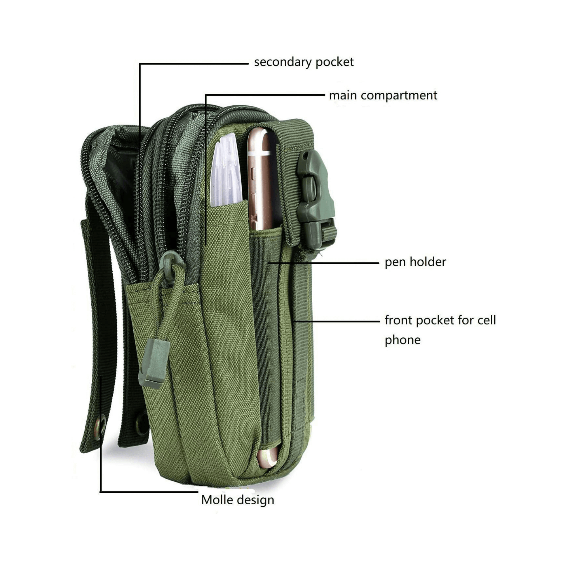 - MULTI-USE STORAGE: This MOLLE faux military waist bag is ideal whether you need to carry your meds with you in a secure place, or whether you want a place to keep your cell phone and power bank safe from the elements. Keys, wallets, glasses, contact lens containers, medical masks, and jewelry are just a few of the other items that this multiple-pocketed bag can hold while you’re busy living your best life.